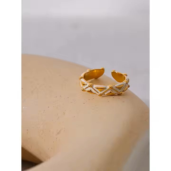 Graphic, gold, and made to pop. This white enamel open ring brings major statement energy β no stacking needed.